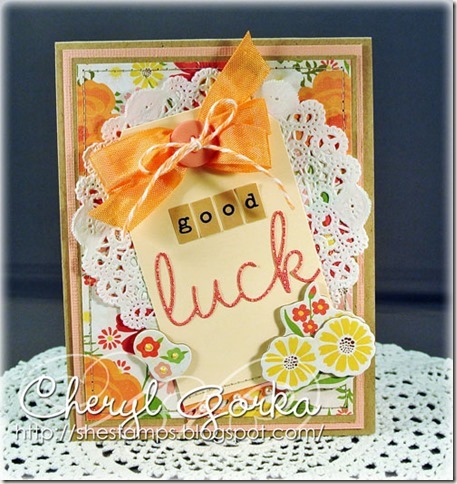 Cheryl, this is fantastic! I love everything about it...the chipboard elements, the doily, pretty background paper...fabulous card!